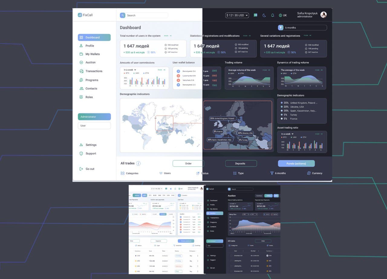 Разработать удобный и современный дизайн для админпанели украинского криптовалютного стартапа FixCall.