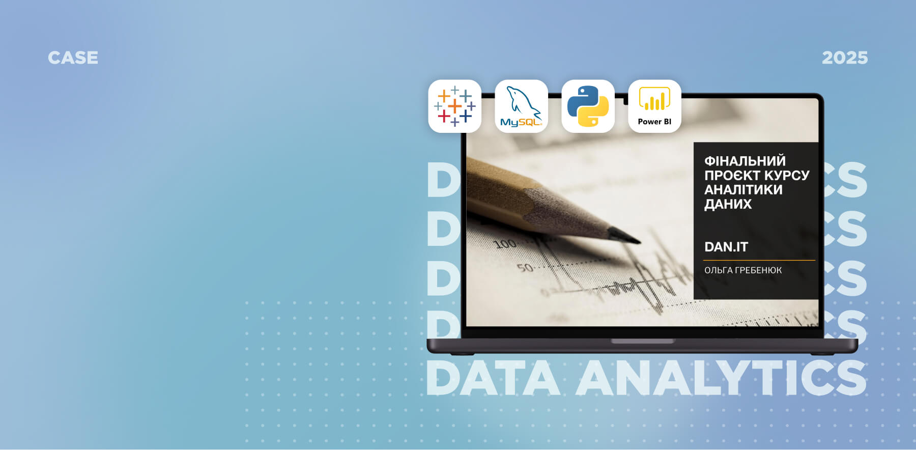Студентка Гребенюк Валентина працювала над фінальним проєктом курсу аналітики даних, який складається з кількох частин. Кожна з них пов’язана з використанням різних інструментів для аналізу даних, таких як SQL, Python, Tableau та Power BI. Проєкт демонструє комплексний підхід до аналізу даних, використовуючи різні інструменти й методи, від обробки баз даних до візуалізації та побудови моделей машинного навчання.
